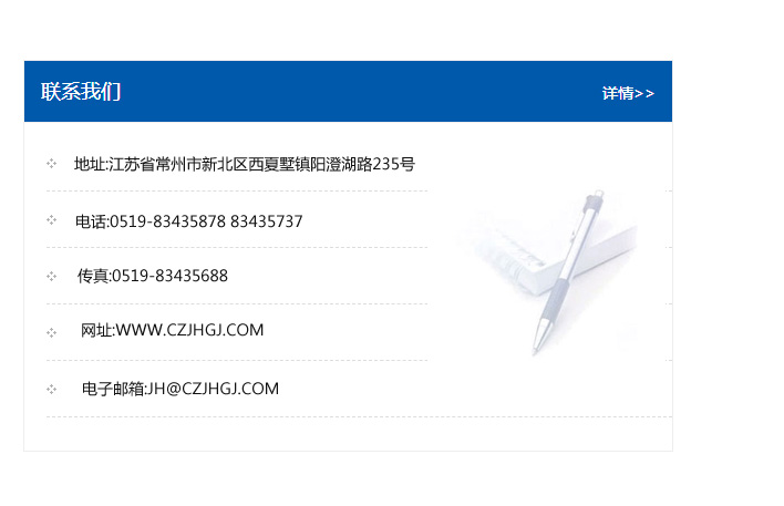 地址:常州市新北區友邦商務大廈1幢16、17層  電話:0519-85101652  傳真:0519-85112595  郵編:213022  網址:www_cz-jiayue_cn.hdnongye.com  郵箱:xiajifengaa@163.com